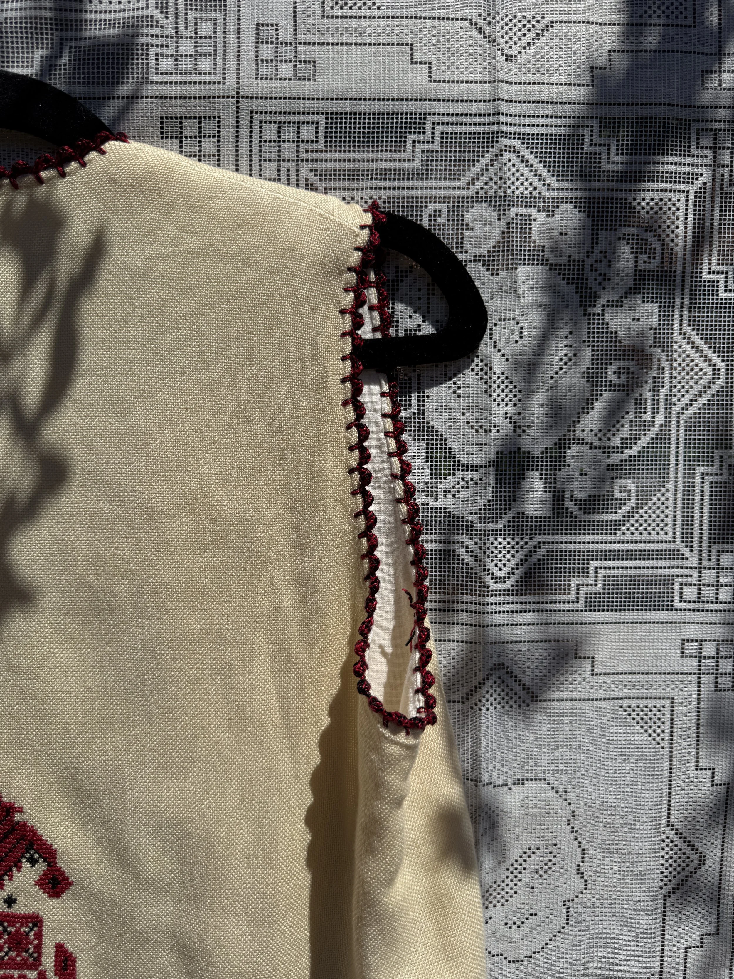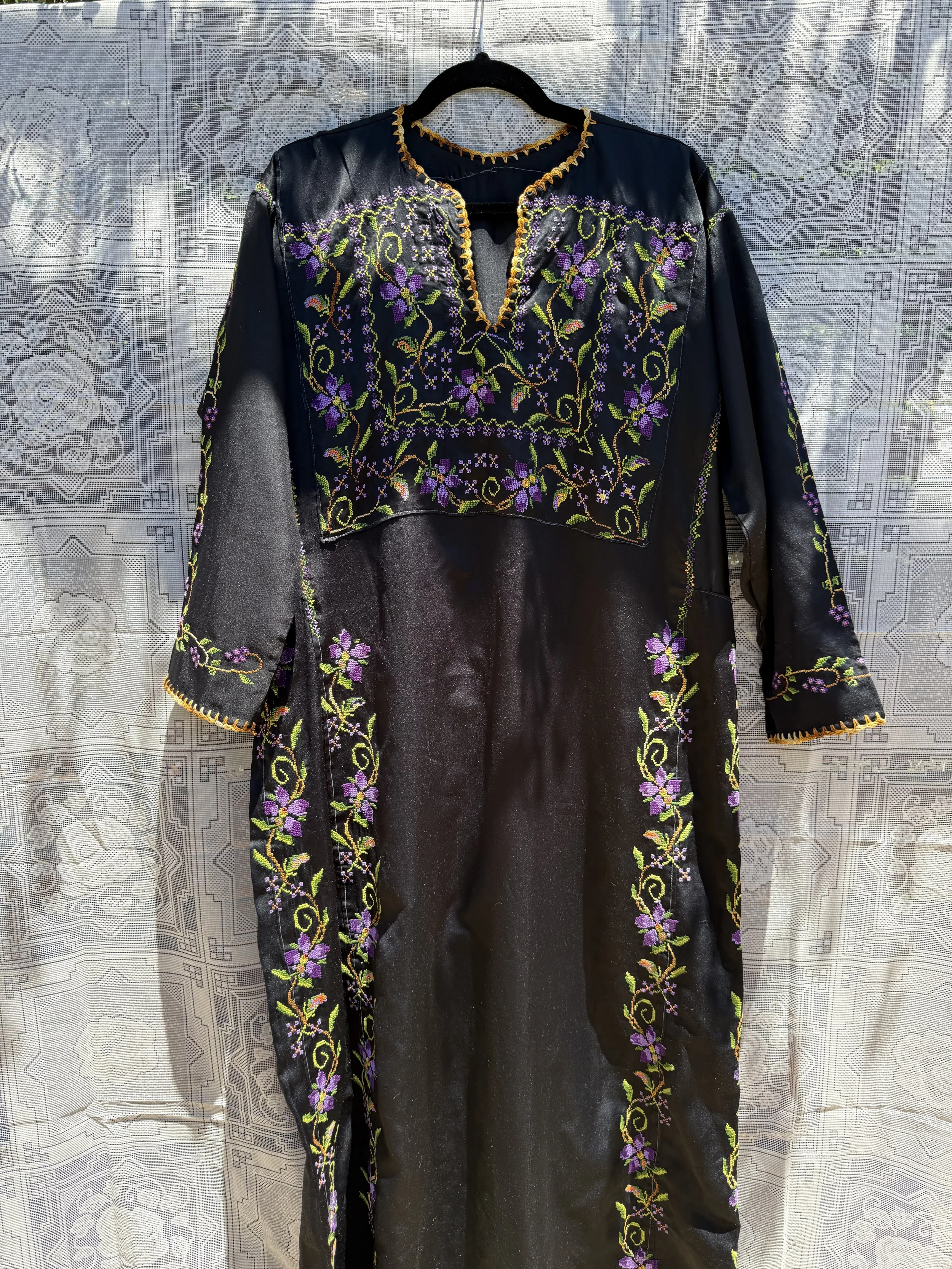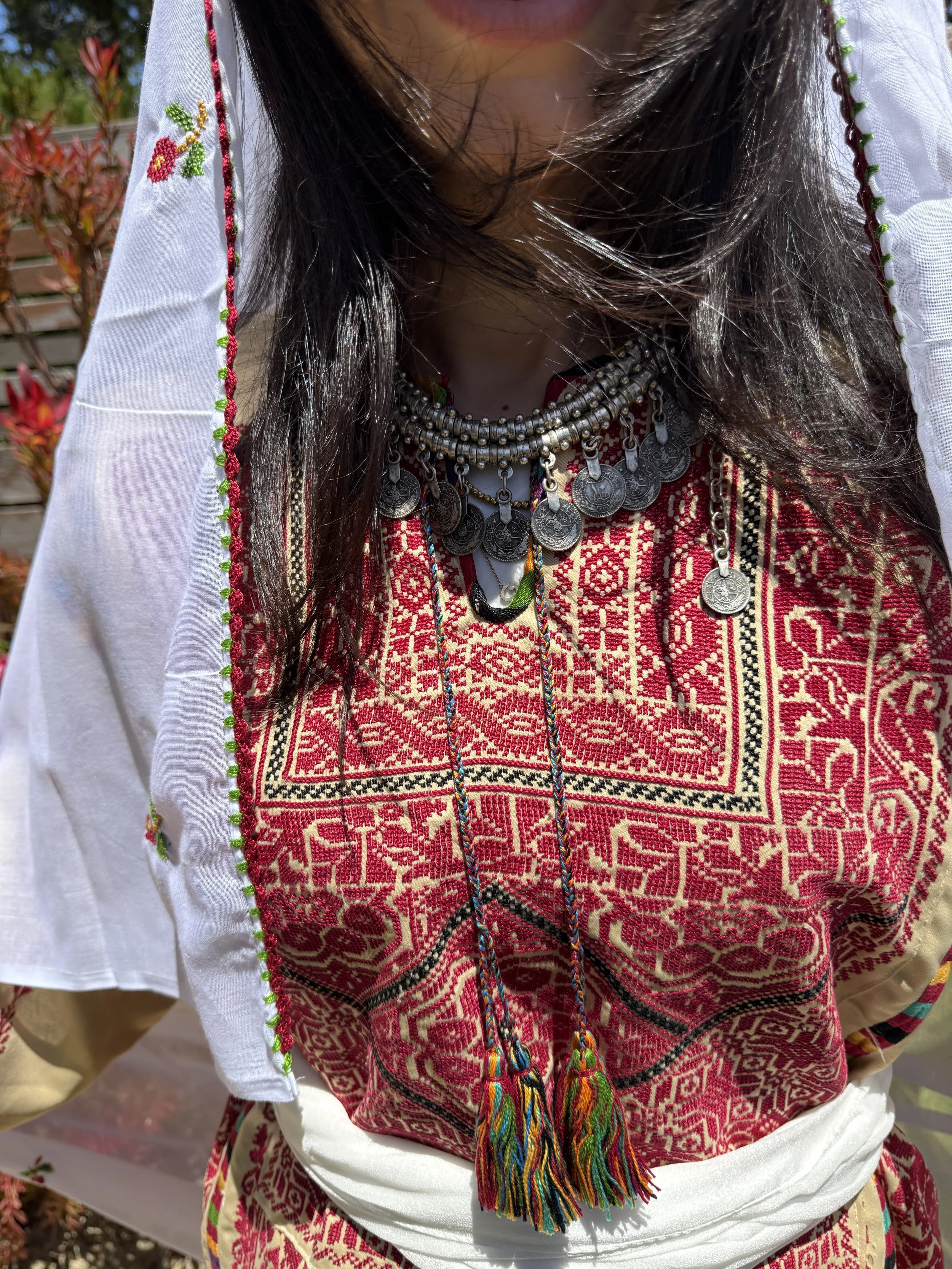 Categories: All Jewelry All | Jewelry | The Late 1800s Bethlehem Malak Qabbah $0.00 Sold out Sold Out Added! The Mid-Century Velvet Taqsirah Jacket $1,000.00 Add To Cart Added! The Upcycled Beaded Tatreez Duster $330.00 Add To Cart Added! Ottoman Coin Choker with Coral Beads $275.00 Add To Cart Added! 1970s Black and Gold Gaza Co-op Thobe $500.00 Add To Cart Added! The Haydari Bracelet (post-British Mandate) $440.00 Add To Cart Added! The Red Vintage Handstitched Tatreez $400.00 Add To Cart Added! The 1970s Co-op Tatreez Tunic $120.00 Add To Cart Added! Groovy Vest with Cross Stitch Details $125.00 Add To Cart Added! Ottoman Coin Earrings with Black Center Stone $60.00 Add To Cart Added! The 1980s Ramallah Six-Branch Thobe with Crosses & Roses $400.00 Add To Cart Added! “I Love You” Arabic Handmade Sterling Silver Earrings $120.00 Add To Cart Added! The 1940s Egyptian Hand Crocheted Revival Purse $50.00 Add To Cart Added! The Six-Branch Thobe with Birds & Ostriches $400.00 Add To Cart Added! 1930s-1940s Antique Sterling Silver Filigree Bracelet — Made in Palestine $0.00 Sold out Sold Out Added! 1950s-1960s Black & Gold Taqsirah Jacket $0.00 Sold out Sold Out Added! 1950s Bethlehem Taqsirah Jacket with Silk Floss and Silk Moiré Lining $0.00 Sold out Sold Out Added! The Blue Vintage Handstitched Tatreez Jacket $0.00 Sold out Sold Out Added! The Vintage Ottoman Coin Necklace $120.00 Add To Cart Added! The 1960–70s Saraqeb Thobe from Syria $0.00 Sold out Sold Out Added! The Antique Ottoman Coin Necklace with a Braided Chain $180.00 Add To Cart Added! Vintage Palestinian Cotton Tatreez Shawl with Fringes $230.00 Sold out Sold Out Added! The Petite Queen Thobe $300.00 Sold out Sold Out Added! Antique "Made in Palestine" Sterling Silver Filigree Bracelet with Lapis Lazuli Stones $0.00 Sold out Sold Out Added! Antique “Made in Palestine” Silver Filigree Bracelet ✨ $0.00 Sold out Sold Out Added! Egyptian Revival Glass Bead Necklace $300.00 Sold out Sold Out Added! The 1950s–1960s Blue Velvet Bethlehem Taqsirah Cape with Matching Purse $550.00 Sold out Sold Out Added! 1960s Red Taqsirah Jacket with Ottoman Medallions $0.00 Sold out Sold Out Added! 1970s Gaza Qilada Thobe $500.00 Sold out Sold Out Added! The Cream Nool Stitch Thobe with Bust Pocket (1970s–1980s) $330.00 Sold out Sold Out Added! The Vintage Handstitched Tatreez Jacket $0.00 Sold out Sold Out Added! The Mid-Century Syrian Gilded Filigree Necklace Headpiece $175.00 Sold out Sold Out Added! 1970s Allah is the Best Protector Groovy Arabic Pendant $120.00 Sold out Sold Out Added! The Antique Levantine Silver Boob Bracelet $175.00 Sold out Sold Out Added! The Vintage Tatreez Shawl with Bedouin Motifs $200.00 Sold out Sold Out Added! The 1920s Syrian Sukhneh Skirt $0.00 Sold out Sold Out Added! The Habbayat Bracelet (Post British Mandate) $350.00 Sold out Sold Out Added! Vintage Handmade Bedouin Mother of Pearl Earrings $75.00 Sold out Sold Out Added! The Deek and Asfoor Tatreez Blazer $400.00 Sold out Sold Out Added! The Vintage Leech Thobe & Vest $0.00 Sold out Sold Out Added! The Upcycled Lebanese-Syrian Galabiya-Dishdasha Tunic $65.00 Sold out Sold Out Added! The 1970s Groovy Thobe $330.00 Sold out Sold Out Added! The Vintage Ottoman Coin Bib Necklace $120.00 Sold out Sold Out Added! The 1990s Arabic Pop Star Dress $175.00 Sold out Sold Out Added! The 90s Khaleeli Iris Flower & Grape Vine Summer Thobe $300.00 Sold out Sold Out Added! The 1960-1970s Bethlehem Taqsirah Vest $320.00 Sold out Sold Out Added! The 90s Tree of Life Tatreez Jacket $400.00 Sold out Sold Out Added! The 80s Khaleeli Summer Garden Thobe $340.00 Sold out Sold Out Added! The Tiered Vintage Ottoman Coin Necklace $120.00 Sold out Sold Out Added! The Mid-Century Velvet Nool Thobe $325.00 Sold out Sold Out Added! The 1990s Handstitched Tatreez Jacket $0.00 Sold out Sold Out Added! The 1970S Gaza Qilada Thobe $0.00 Sold out Sold Out Added! The 1980s Khaleeli Grapes & Flowers Thobe $0.00 Sold out Sold Out Added! One-of-a-Kind Upcycled Vest with Mid-Century Bedouin Tatreez $0.00 Sold out Sold Out Added! Antique 1800s Galilee Fish Amulet Necklace with Niello $0.00 Sold out Sold Out Added! Antique Velvet Cape with Tahriri Stitching $0.00 Sold out Sold Out Added! The Mid-Century Syrian Skirt $0.00 Sold out Sold Out Added! Antique Ramallah Velvet Taqsirah Jacket $0.00 Sold out Sold Out Added! The 1920s Mashallah Hair Charm $0.00 Sold out Sold Out Added! Antique Palestinian Silver Filigree Bracelet $0.00 Sold out Sold Out Added! Antique Palestinian Haydari Bracelet $0.00 Sold out Sold Out Added! Antique Palestinian Habbayat Bracelet Cuff $0.00 Sold out Sold Out Added!